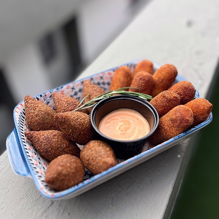 Esponjosas croquetas de pollo con un crocante empanizado.