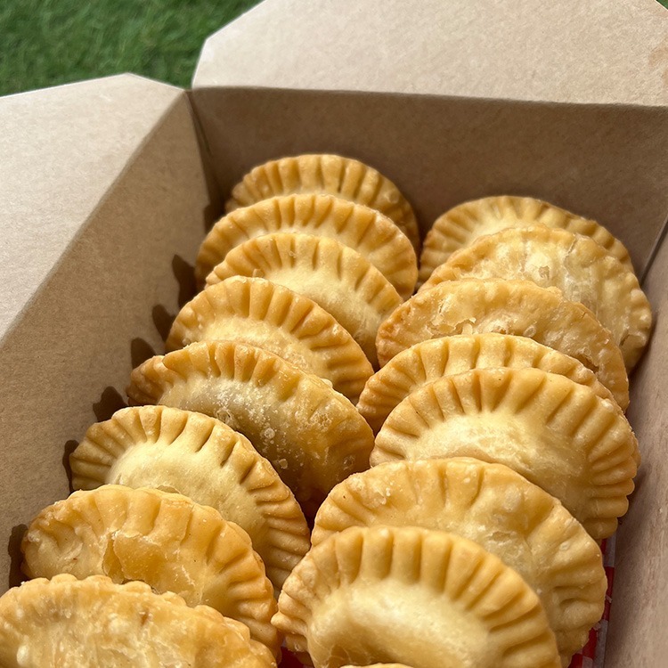 Clásico pastelito de pechuga de pollo sazonada, sin pasas.